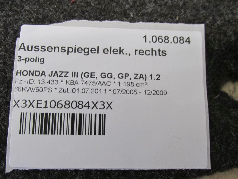 Aussenspiegel elek., rechts 3-poligHONDA JAZZ III (GE, GG, GP, ZA) 1.2